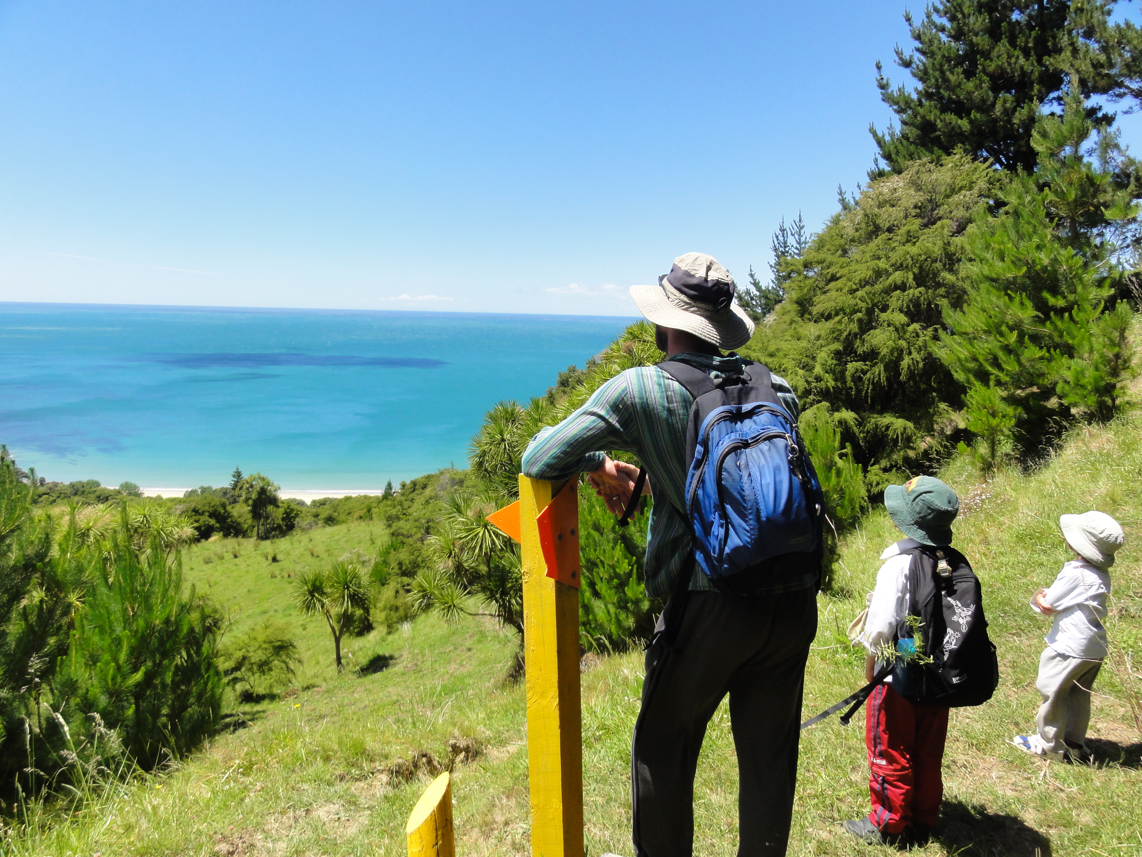 Down at the campsite, columns of sunlight penetrated through an old pohutukawa tree where a lone tyre hung from one of its many branches. This was supposedly the playground, though looking beyond the fringe of flowering rata trees lining the coast, it was apparent the swing would have to wait. Like a magnet the golden sand and calm sea drew us all closer as we parked up for the first night of a week long stop.