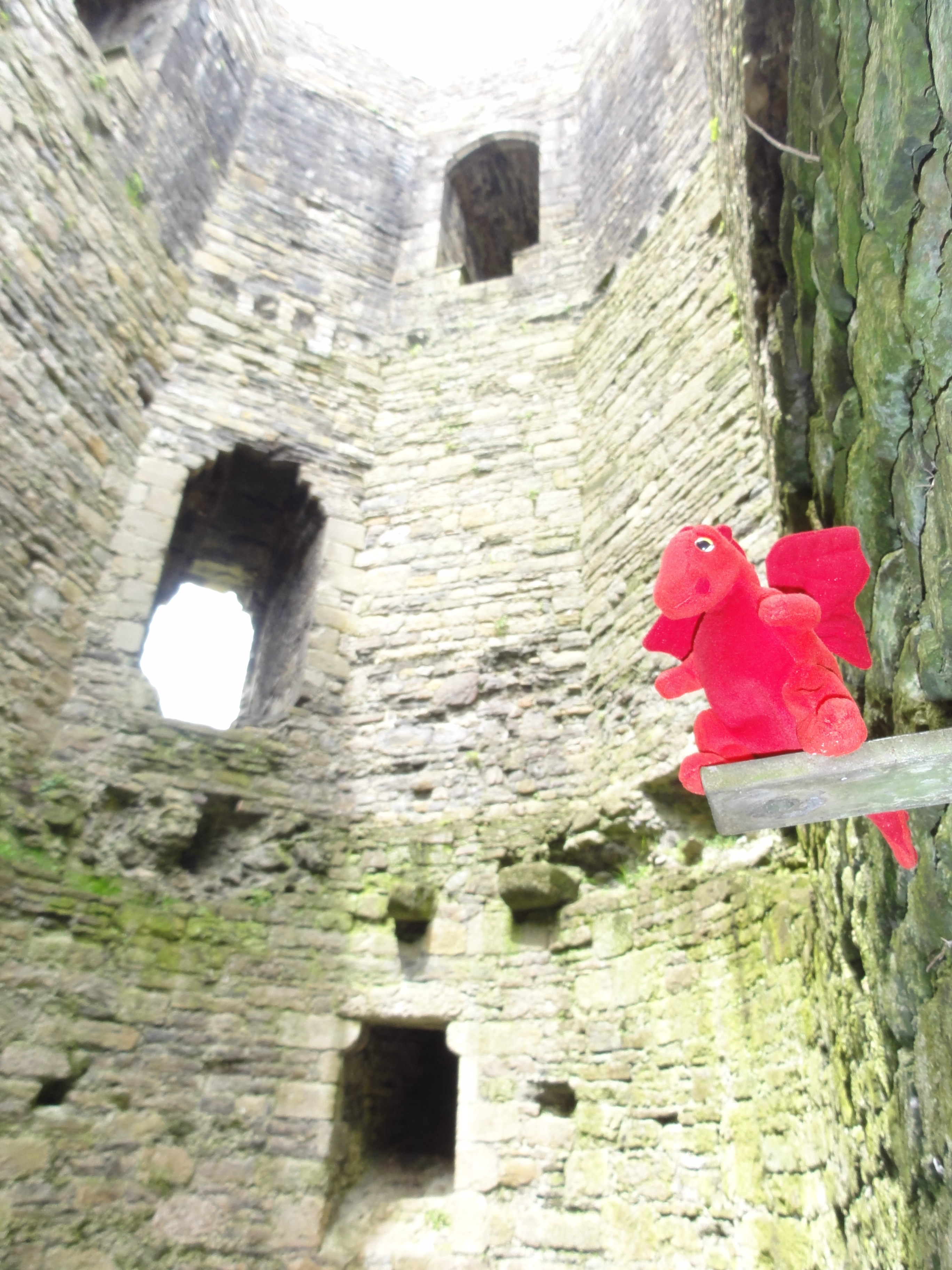 And, by the end of the day, we rested in the castle’s interior to gaze up past its unfinished roof as the drifting cumulus passed above.  Amongst the clouds gliding by, it was just about possible to make out the faint outline of a Welsh dragon floating overhead.