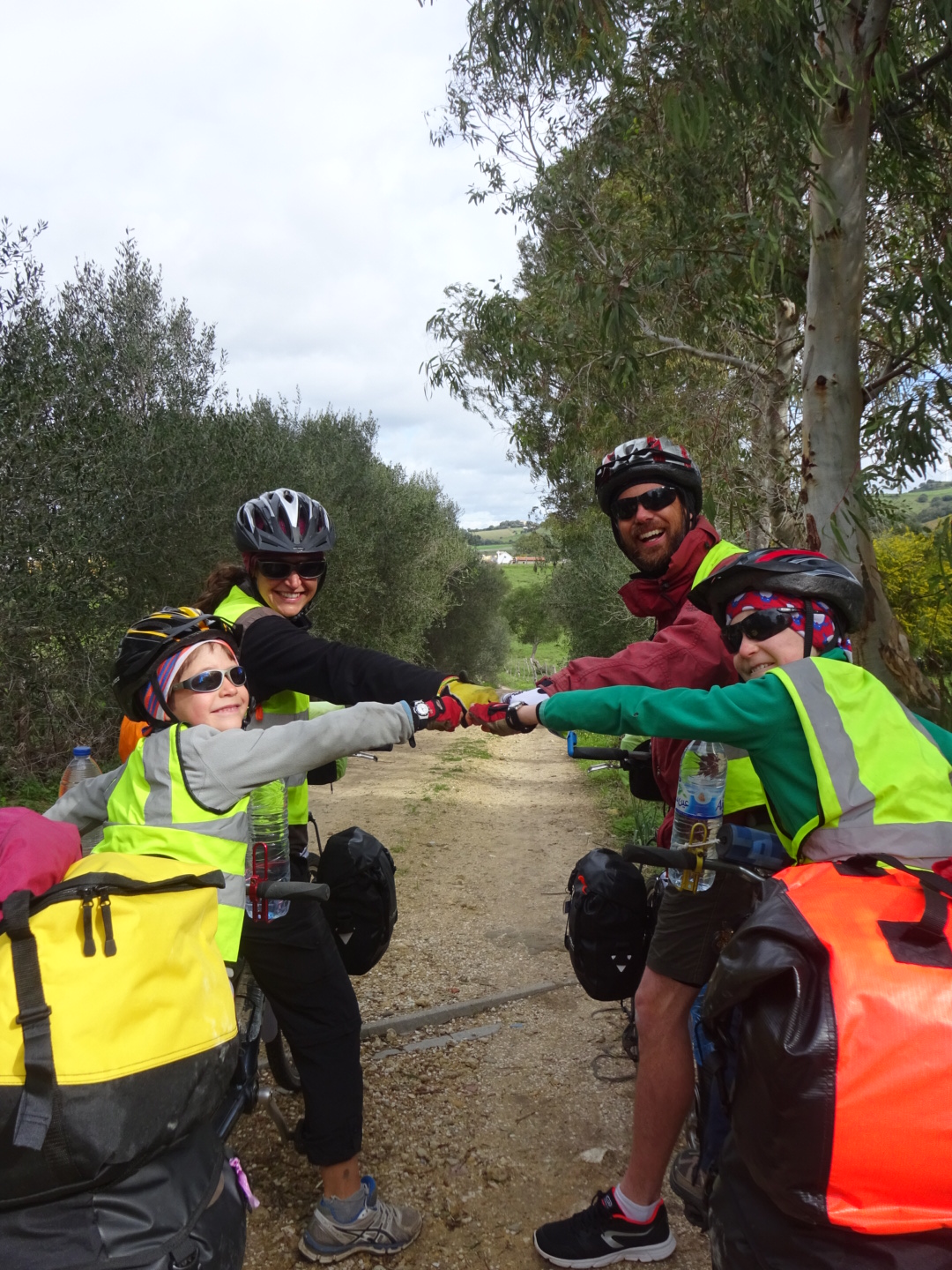 By comparison -when February rolled around- our first day’s cycle north from Vejer, in Spain, resulted in us camping that night just on the otherside of Vejer… Spain.